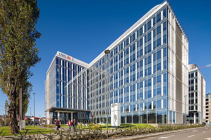 A joint venture with Bluehouse Capital for 40,000 m2 of net office space located in the centre-north of Bucharest. The development comprises 3 buildings over two levels of underground parking for 600 cars with LED lighting, vehicle recognition technology, cycle racks and changing facilities for cyclists. There is an ING bank, retail facilities, “Flavors” restaurant, and an external amphitheatre in a heavily landscaped central area. There are photovoltaic panels on the roofs which provide power to heat the hot water in the buildings and opening panels in the façade to decrease external heat gains but allow fresh air. Building 3 is fully leased to ING Bank (18,000 m2). Building 2 is leased to various tenants including a Regus “Spaces” serviced office centre. The complex was completed in summer 2019 and sold to S IMMO in 2022.
